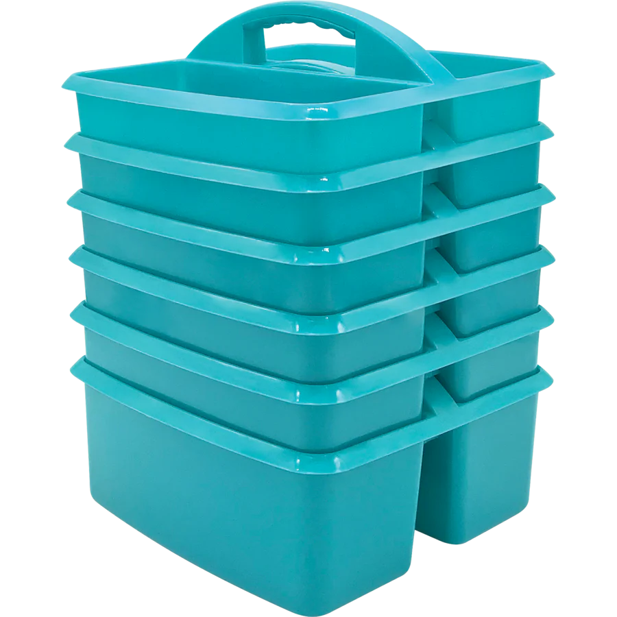 These storage caddies are handy totes for your markers, calculators, timers, manipulatives, and many more small items that you want to keep within reach. Made from durable plastic and include divided compartments for easy organizing. Each plastic caddie with handle measures 9¼"L x 9"W x 5¼"H.